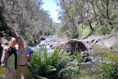 What a glorious sunny morning it had become by the time we locked our car and set off down the track to the Murrumbooee Cascades, an easy walk filled with sweet forest aromas that kept the pain of carrying so much weight out our thoughts.